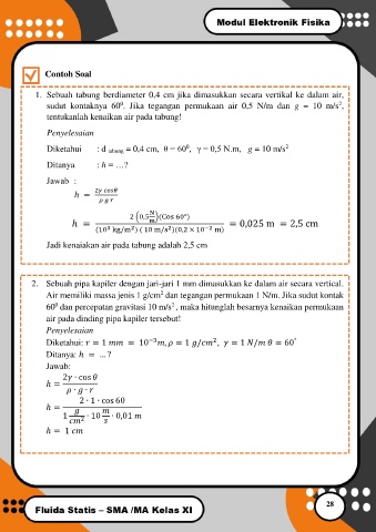 Diketahui : d tabung = 0,4 cm, θ = 60 , γ = 0,5 N.m, g = 10 m/s