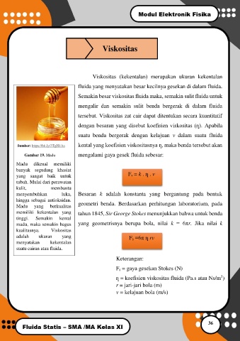 madu, maka semakin bagus yang geometrisnya berupa bola, nilai k = 6πr. Jika nilai k