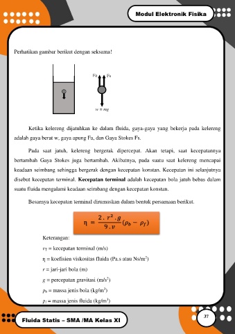 bertambah Gaya Stokes juga bertambah. Akibatnya, pada suatu saat kelereng mencapai