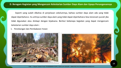 D. Beragam Kegiatan yang Mengancam Kelestarian Sumber Daya Alam dan Upaya Penanganannya