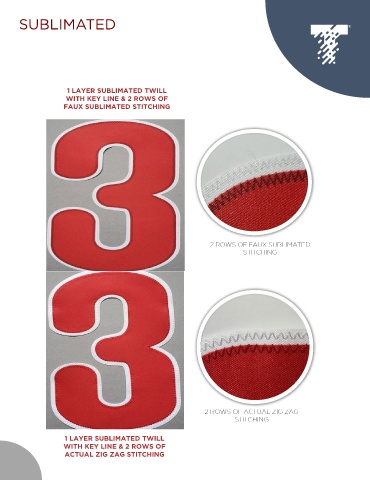 SUBLIMATED 1 LAYER SUBLIMATED TWILL WITH KEY LINE & 2 ROWS OF FAUX SUBLIMATED STITCHING 2 ROWS OF FAUX SUBLIMATED STITCHING 2 ROWS OF ACTUAL ZIG ZAG STITCHING 1 LAYER SUBLIMATED TWILL WITH KEY LINE & 2 ROWS OF ACTUAL ZIG ZAG STITCHING