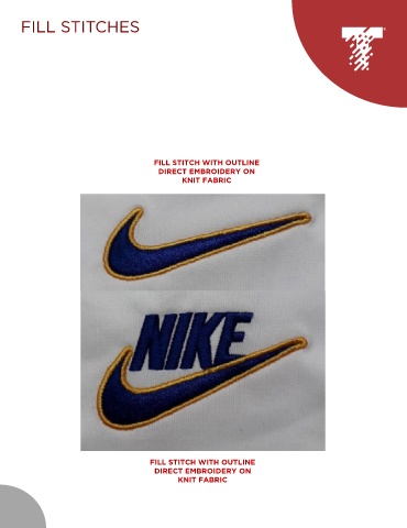 FILL STITCHES FILL STITCH WITH OUTLINE DIRECT EMBROIDERY ON KNIT FABRIC FILL STITCH WITH OUTLINE DIRECT EMBROIDERY ON KNIT FABRIC