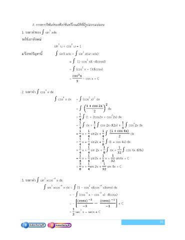 II. การหาปริพันธ์ของฟงก์ชันตรีโกณมิติที่มีรูปแบบแน่นอน