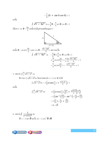 พิจารณา ∫ √4 − dx โดยการแทนค่า x = 2 sin θ จะได้
