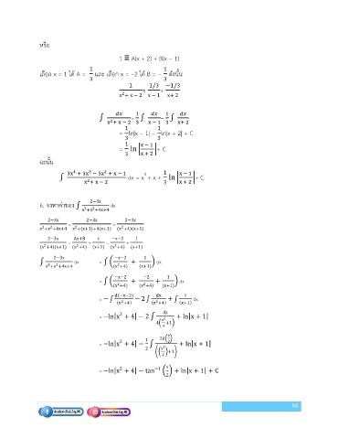 เลือก x = 1 ได้ A = และ เลือก x = −2 ได้ B = − ดังนั้น