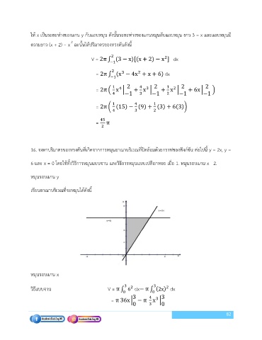 16. จงหาปริมาตรของทรงตันที่เกิดจากการหมุนอาณาบริเวณที่ปิดล้อมด้วยกราฟของฟงก์ชัน ต่อไปนี้ y = 2x, y =