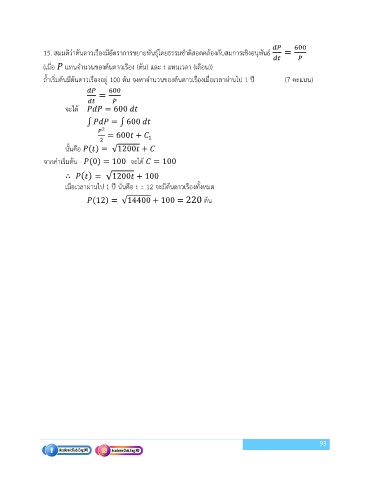 15. สมมติว่าต้นดาวเรืองมีอัตราการขยายพันธุ์โดยธรรมช าติสอดคล้องกับสมการเชิงอนุพันธ์ =