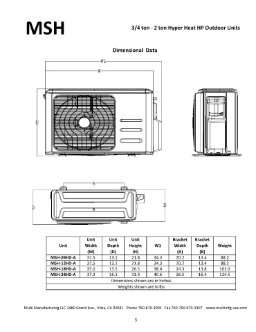MSH 3/4 ton - 2 ton Hyper Heat HP Outdoor Units