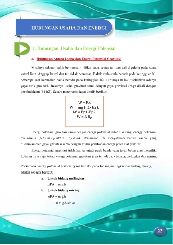 a. Hubungan Antara Usaha dan Energi Potensial Gravitasi