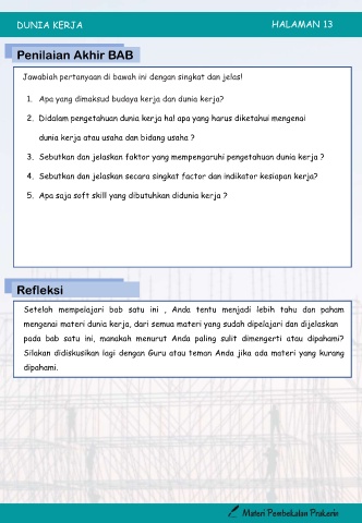 mengenai materi dunia kerja, dari semua materi yang sudah dipelajari dan dijelaskan
