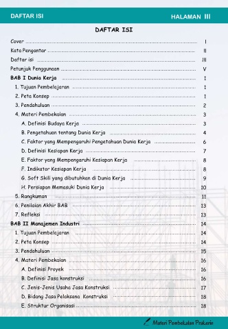 B. Pengetahuan tentang Dunia Kerja ………………………………………………………………… 4