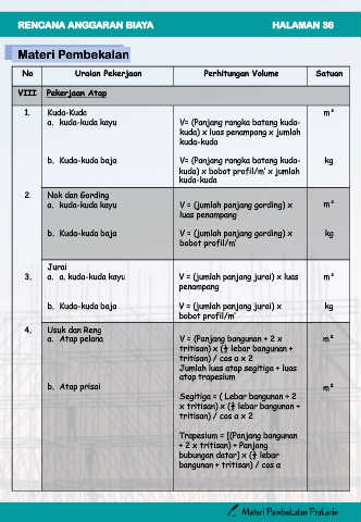 3.     a. a. kuda-kuda kayu                   V = (jumlah panjang jurai) x luas          m³