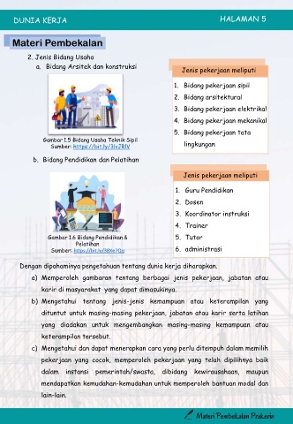 a. Bidang Arsitek dan konstruksi Jenis pekerjaan meliputi