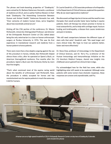 A horse runs on a high-speed treadmill at CSU’s Orthpaedic Research Center on day two of Zoobiquity Colorado.