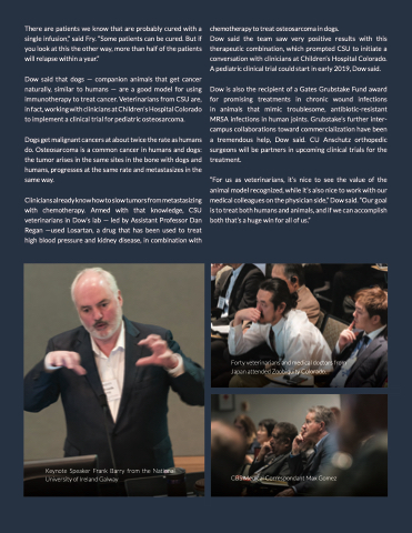 Dow said that dogs — companion animals that get cancer naturally, similar to humans — are a good model for using immunotherapy to treat cancer. Veterinarians from CSU are, in fact, working with clinicians at Children’s Hospital Colorado to implement a clinical trial for pediatric osteosarcoma.
