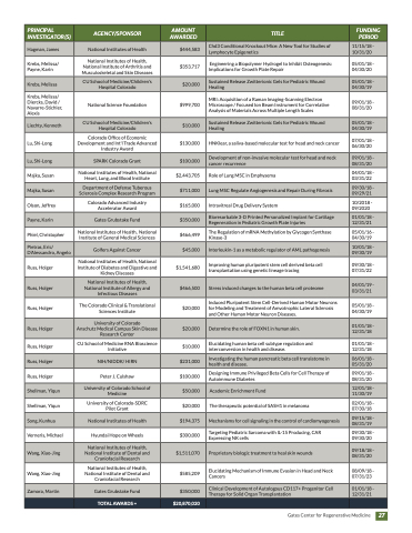 The Colorado Clinical & Translational Induced Pluripotent Stem Cell-Derived Human Motor Neurons 05/01/18 - Russ, Holger Sciences Institute $20,000 for Modeling and Treatment of Amvotrophic Lateral Sclerosis 04/30/19