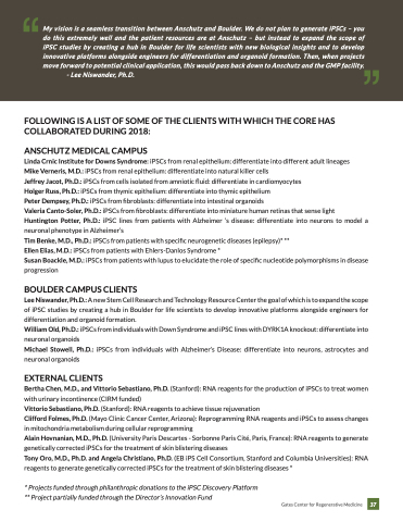 Valeria Canto-Soler, Ph.D.: iPSCs from fibroblasts: differentiate into miniature human retinas that sense light Huntington Potter, Ph.D.: iPSC lines from patients with Alzheimer ’s disease: differentiate into neurons to model a neuronal phenotype in Alzheimer’s