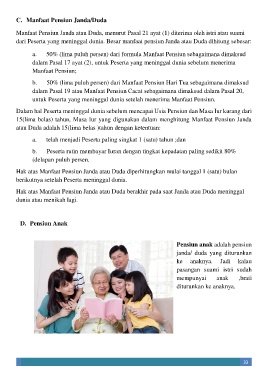 Manfaat Pensiun Janda atau Duda, menurut Pasal 21 ayat (1) diterima oleh istri atau suami