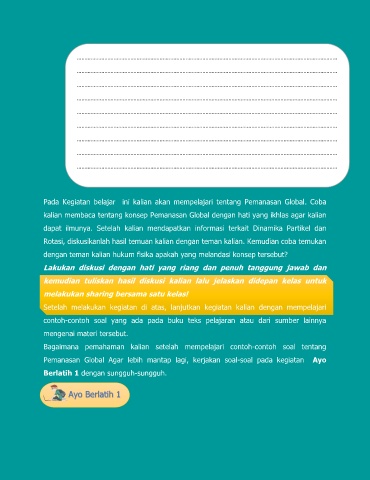 Pada Kegiatan belajar ini kalian akan mempelajari tentang Pemanasan Global. Coba