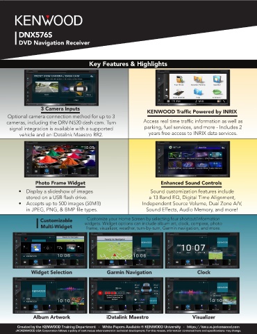 3 Camera Inputs KENWOOD Traffic Powered by INRIX