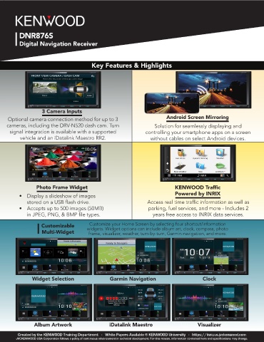 cameras, including the DRV-N520 dash cam. Turn Solution for seamlessly displaying and