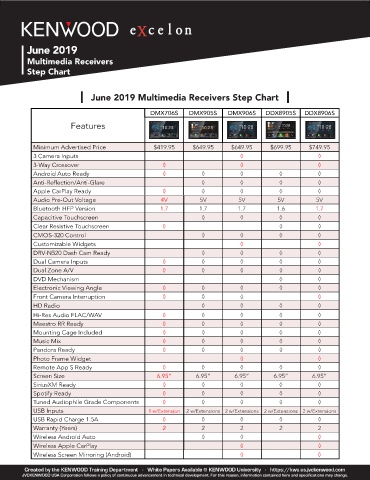 June 2019 Multimedia Receivers Step Chart