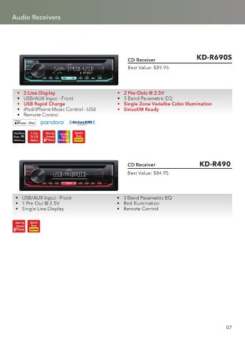 • 2 Line Display • 2 Pre-Outs @ 2.5V