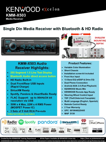 • Spotify, Pandora & iHeartRadio Ready • KENWOOD Remote App Ready