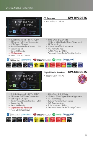 • CD Receiver • Pandora/iHeartRadio/Spotify Control