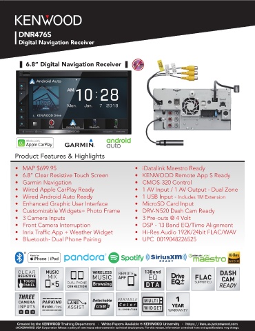 • 6.8” Clear Resistive Touch Screen • KENWOOD Remote App S Ready