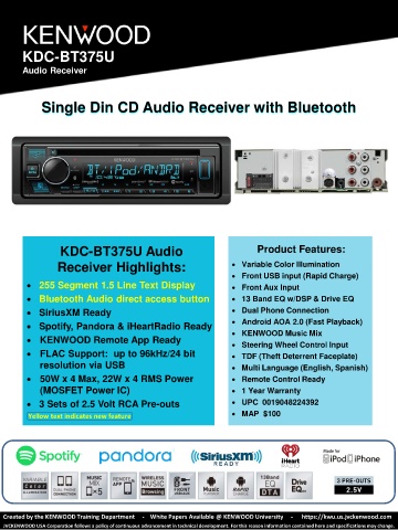 KDC-BT375U Audio Product Features: