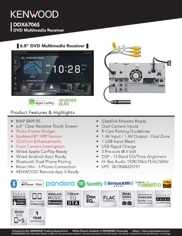 • Wired Apple CarPlay Ready • 3 Pre-outs @ 4 Volt