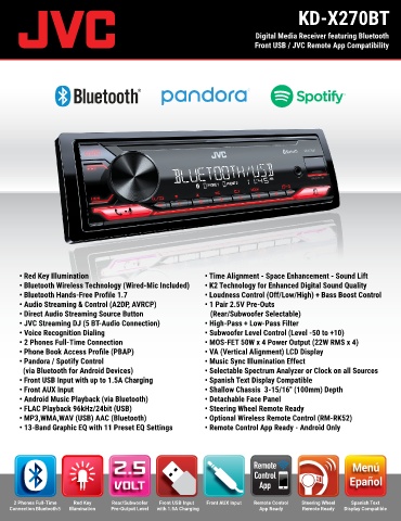 • Front USB Input with up to 1.5A Charging • Spanish Text Display Compatible