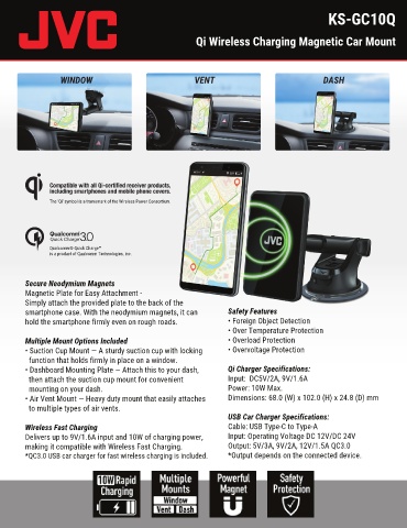 • Dashboard Mounting Plate — Attach this to your dash, Qi Charger Specifications: