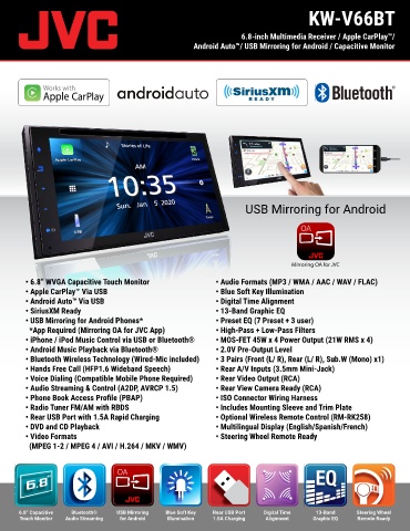 • USB Mirroring for Android Phones* • Preset EQ (7 Preset + 3 user)