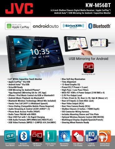 *App Required (Mirroring OA for JVC App) • MOS-FET 45W x 4 Power Output (21W RMS x 4)