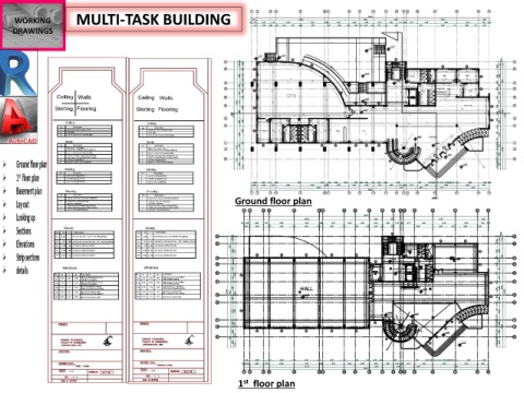 MULTI-TASK BUILDING Ground floor plan st 1 floor plan