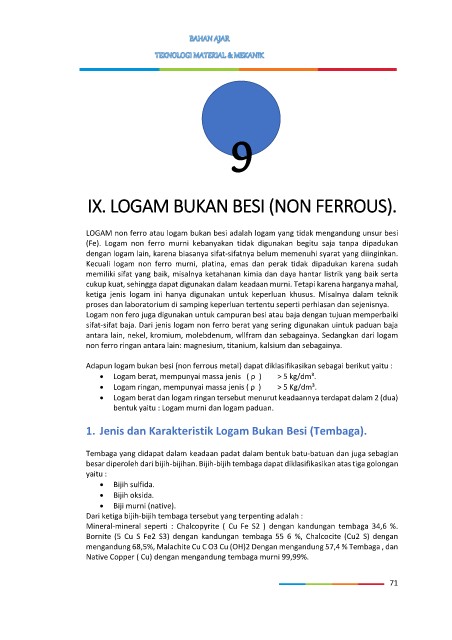 IX. LOGAM BUKAN BESI (NON FERROUS).