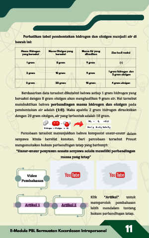 bereaksi dengan 8 gram oksigen akan menghasilkan 9 gram air. Hal tersebut