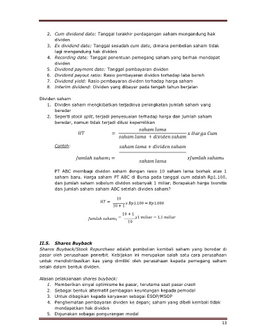 3. Ex dividend date: Tanggal sesudah cum date, dimana pembelian saham tidak