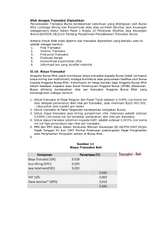 1. Untuk transaksi di Pasar Reguler dan Pasar Tunai sebesar 0,018% (nol koma nol