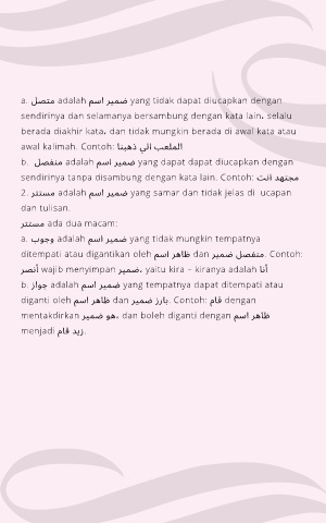 diganti oleh ﻢﺳا ﺮﻫﺎﻇ dan ﺮﻴﻤﺿ زرﺎﺑ. Contoh: مﺎﻗ dengan