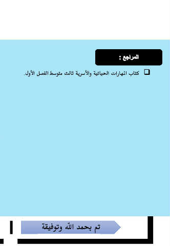 المراجع : كتاب المهارات الحياتية والأسرية ثالث متوسط الفصل الأول. تم بحمد الله وتوفيقة