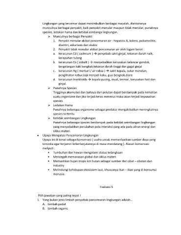 1. Yang bukan jenis limbah penyebab pencemaran lingkungan adalah…