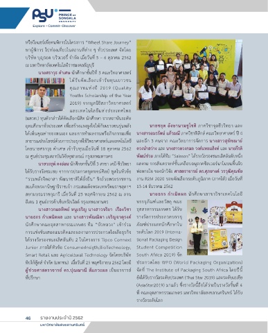 สาธารณประโยชน์ด้วยการประยุกต์ใช้วทยาศาสตร์และเทคโนโลย และอีก 3 คนจาก คณะวิทยาการจัดการ นางสาวสุพิชฌาย์