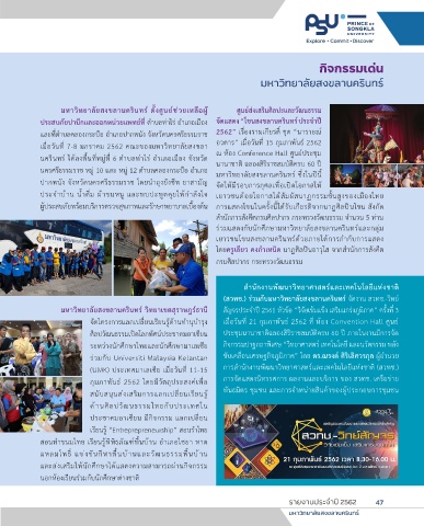 มหาวิทยาลัยสงขลานครินทร์ วิทยาเขตสุราษฎร์ธาน ี สัญจรประจ�าปี 2561 หัวข้อ “วิจัยเข้มแข็ง เสริมแกร่งภูมิภาค” ครั้งที่ 3