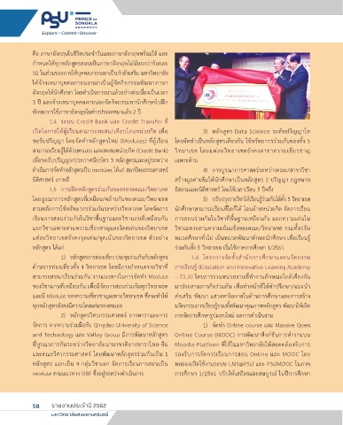 module ตามแนวทาง OBE ซึ่งอยู่ระหว่างด�าเนินการ การศึกษา 1/2561 ปรับให้เสถียรและสมบูรณ์ ในปีการศึกษา