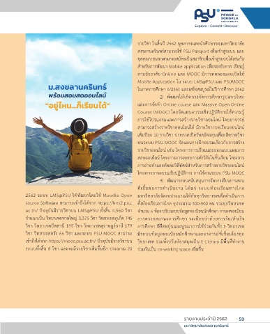 เข้าถึงได้จาก https://mooc.psu.ac.th/ ปัจจุบันมีรายวิชาบน วิทยาเขต รวมท้งปรับห้องสมุดเป็น E-Library มีพ้นท่ท�างาน