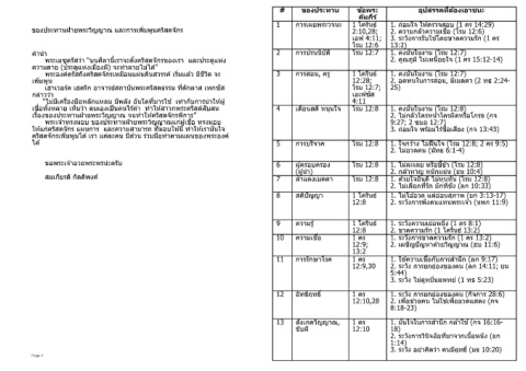 ของประทานฝายพระวิญญาณ และการเพิ่มพูนคริสตจักร 2:10,28; 2. ความกลัวความเชือ (โรม 12:6)