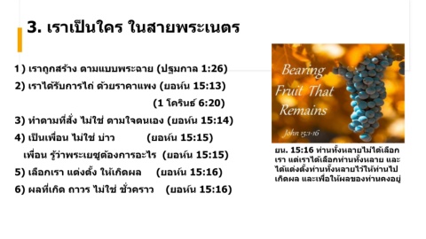 5) เลือกเรา แต่งตั้ง ให้เกิดผล (ยอห์น 15:16) ของ ตน น ท่าน ก็ จะ เป็ น มิตร